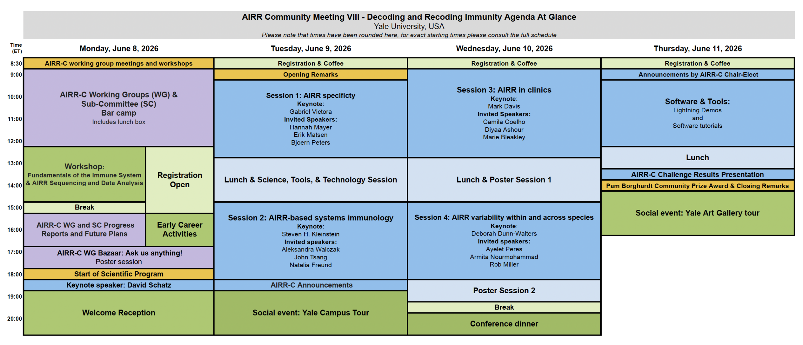 - Scientific sessions covering AIRR Specificity, AIRR-based Systems Immunology, AIRR in the Clinics, and AIRR Variability within and across Species