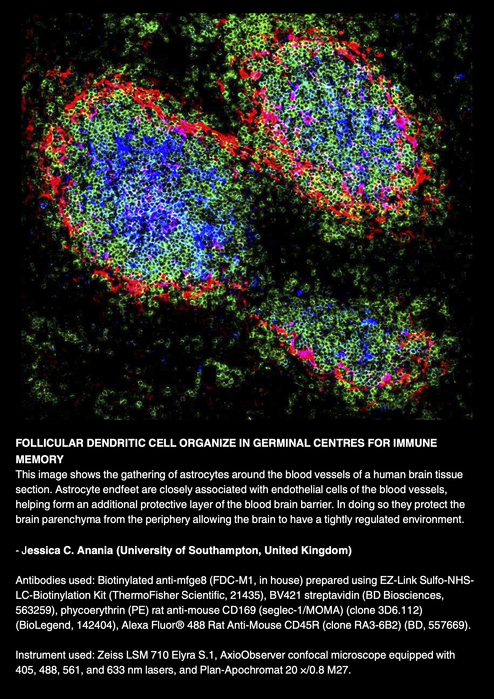July: Follicular Dendritic Cell Organization in Germinal Centers for Immune Memory. Jessica Anania (University of Southampton, UK).