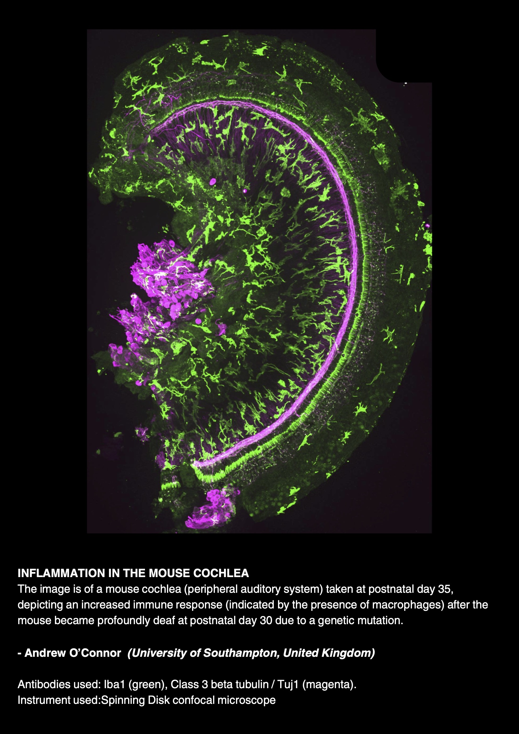 March: Inflammation in the mouse cochlea. Andrew O’Connor (University of Southampton, UK).